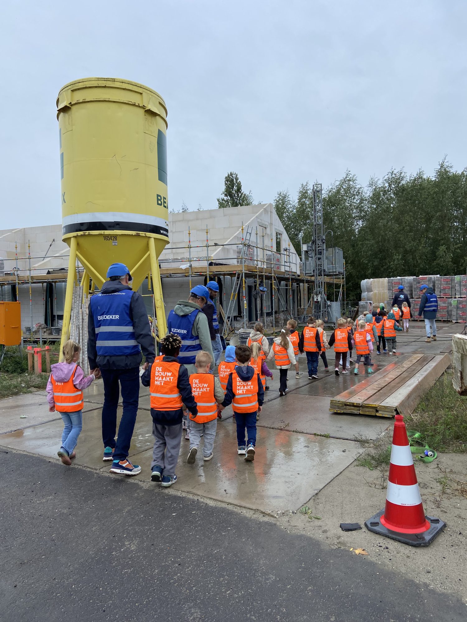 Onze bouwplaats Molenweel in Terheijden is niet alleen een plek waar 56 woningen gebouwd worden. Het is ook een locatie waar bijzondere activiteiten plaatsvinden, waarbij veiligheid en educatie centraal staan. Afgelopen week stond de bouwplaats in het teken van een spannende oefening en een vrolijk bezoek van jong publiek.