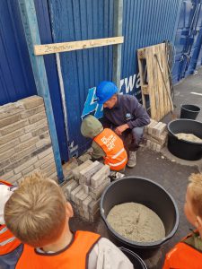 Twee dagen later maakten 60 kleuters van basisschool De Zeggewijzer kennis met de wereld van de bouw. Onder begeleiding van onze collega’s en de juffen liepen ze over de bouwplaats, hielpen mee met metselen en spijkers slaan en kregen ze uitleg over het bouwplan. Natuurlijk hoorde daar ook een gezonde traktatie bij: een appeltje gesponsord door Streekwinkel Meeuwissen. Zo werd leren over bouwen niet alleen leerzaam, maar ook leuk en lekker! En wat is het enthousiasme van de kinderen aanstekelijk!